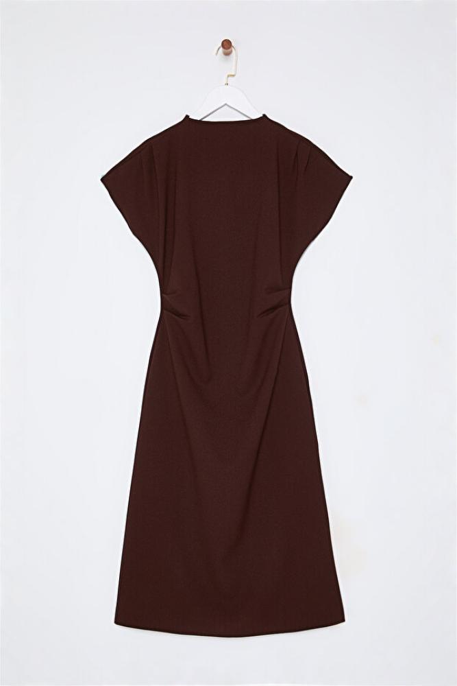 فستان منسوج بطول متوسط ومزين بياقة على شكل حرف A
